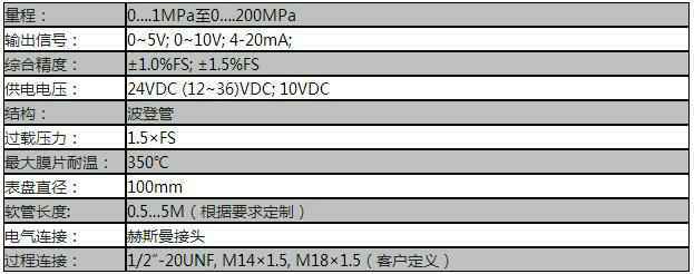 额定量程:0….1MPa至0….200MPa